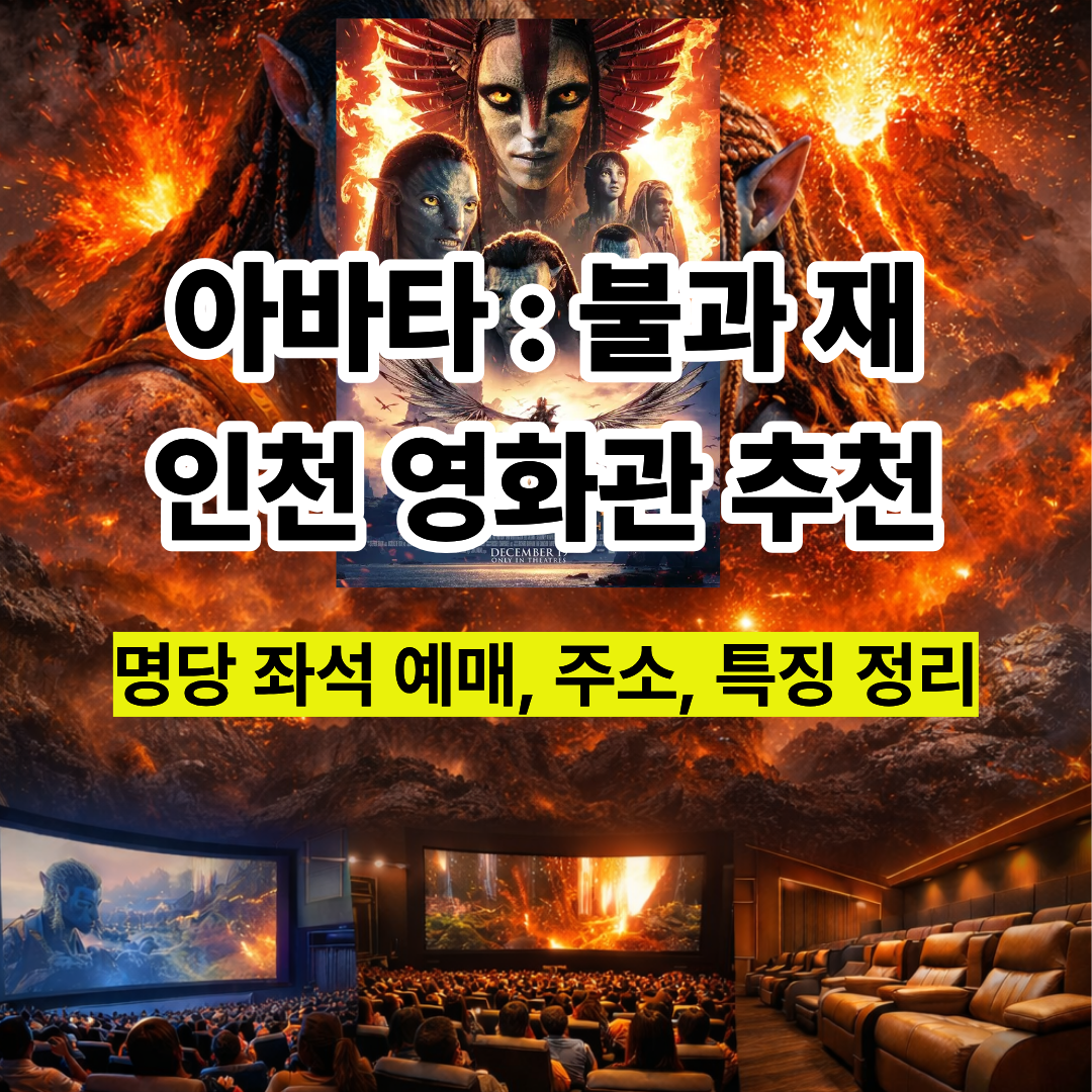 아바타처럼 시각효과와 음향이 중요한 영화는 어떤 영화관에서 보느냐가 정말 중요합니다. 일반 상영관에서 보면 위아래가 잘린 화면으로 보게 되고, 감독이 의도한 압도적인 사운드도 절반밖에 느낄 수 없거든요. 그래서 오늘은 인천에서 아바타: 불과 재를 가장 제대로 즐길 수 있는 영화관 3곳을 순위별로 소개해드릴게요.