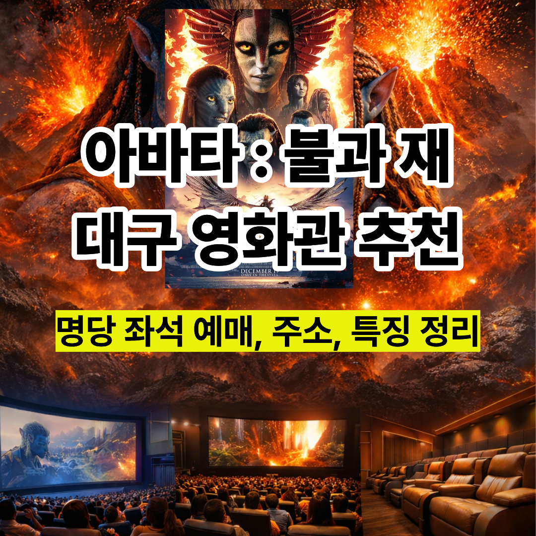 대구에서 아바타: 불과 재를 최고의 환경에서 즐기고 싶다면, 이 세 곳 중에서 선택하시면 절대 후회 없으실 거예요. 3년을 기다린 아바타 3편, 대구 최고의 영화관에서 만나보세요!