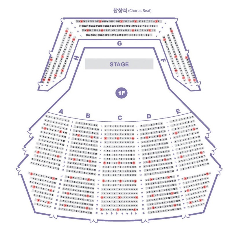 - F블록, G블록, H블록: 무대 뒤에서 지휘자를 마주 보는 좌석